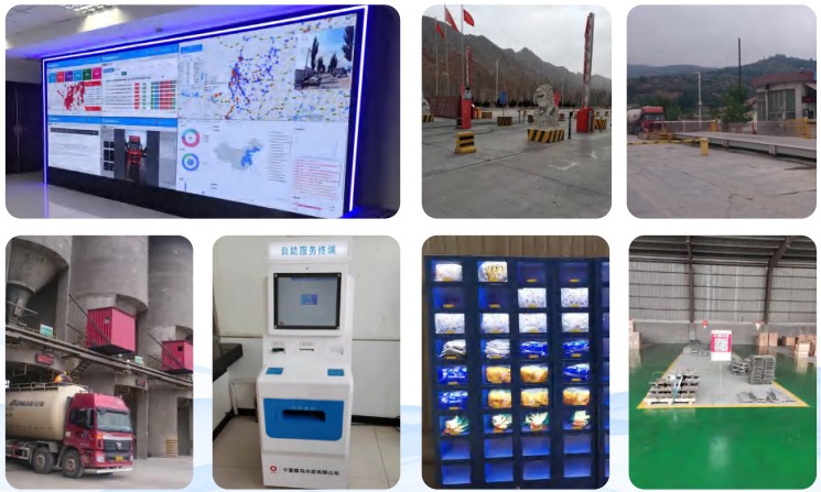 项目覆盖 15 个水泥厂,7 个混凝土搅拌站等 24 个厂区,70 余台地磅,220 个装车控制点,一卡通无人值守系统、销售自助提货系统、采购自助发卡系统、散 / 袋装水泥装车控制系统、软件平台以及系统设计、系统集成等,及集团企业智能仓储的建设,业务涵盖采购业务、销售业务、备品备件业务及共享仓储业务管理,实现集团企业100 多个仓库的统一管理及大物流平台的开发。